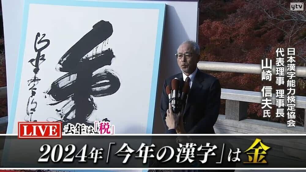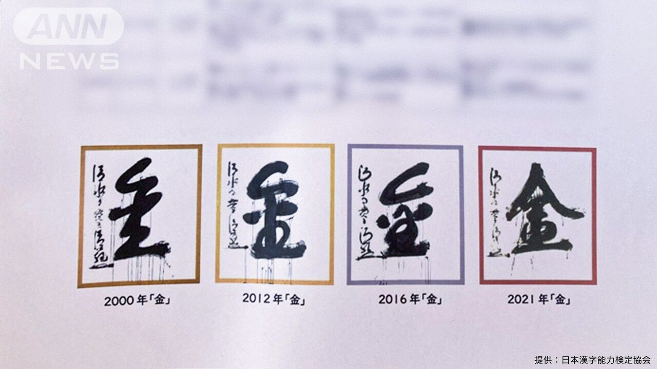 | 今年の漢字は「金」 オリンピックの金メダル、政治の裏金など”光と影”の「金」 …1年の世相を漢字1文字で表す「今年の漢字」が京都の清水寺で発表され、「金」が選ばれました。「金」が選ばれるのは2021年に続き5回目です。 (出典:テレ朝news) |