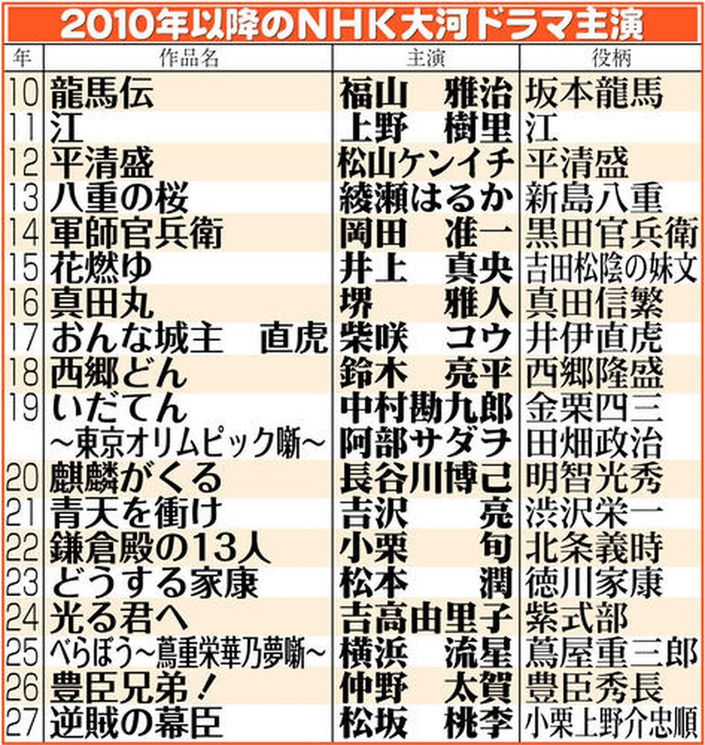 @ano_toshiyoshiよっしゃ‼️ 松坂大河だ 27年大河ドラマ『逆賊の幕臣』主演は松坂桃李【過去10年のタイトル&主演掲載】 | ORICON NEWS oricon.co.jp/news/2371888/f…